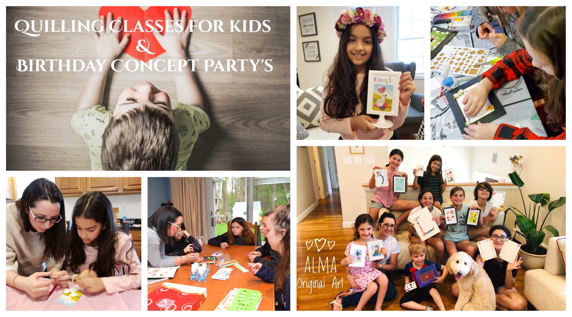 Enjoy a verity of quilling classes and birthday parties, in small groups, one on one or virtual.These classes can be the highlight of your child's birthday with an optional gift bag of customized quilling kit.